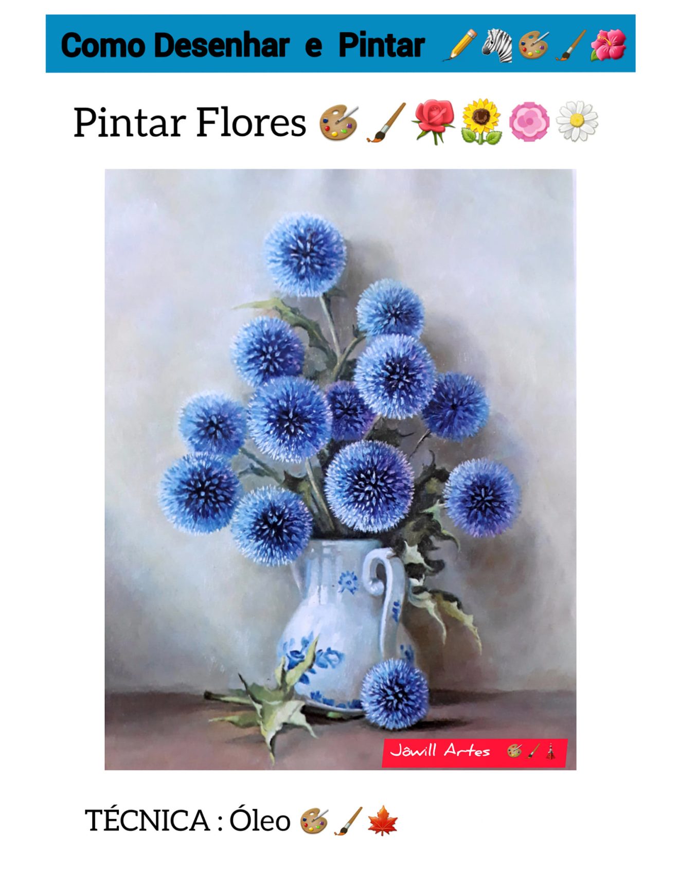 • Os passos necessários para esboçar e pintar arranjos florais, incluindo a aplicação exata das cores.